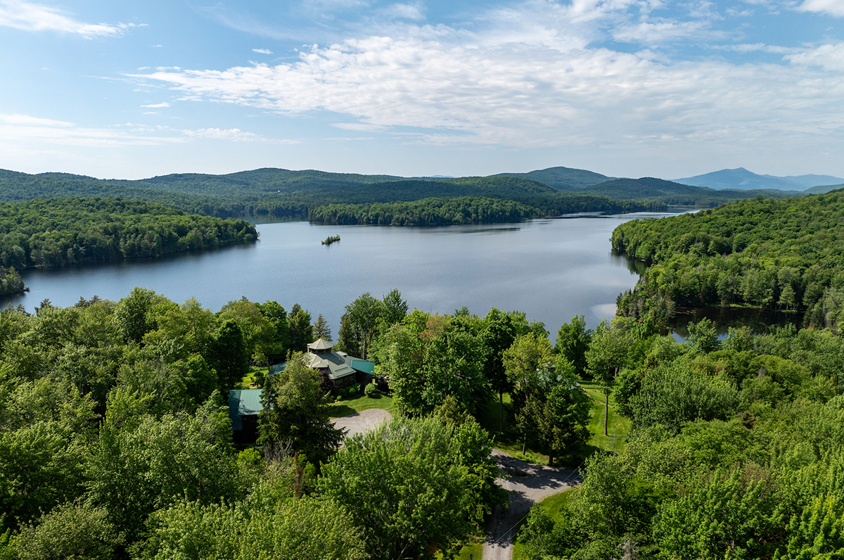 Ondine looks to the north, over the lake, which is 4 miles long, with 19 miles of shoreline, and is surrounded by the 5,500 acre Green River Reservoir State Park. The lake is the largest body of water in Vermont that does not allow motor boats, except electric trolling motors. The lake is meant for paddling, rowing, sailing, fishing and swimming. Each of the estate’s residences have unobstructed views of the lake and mountains beyond, where loons cry out every morning, where bass and perch are abundant.