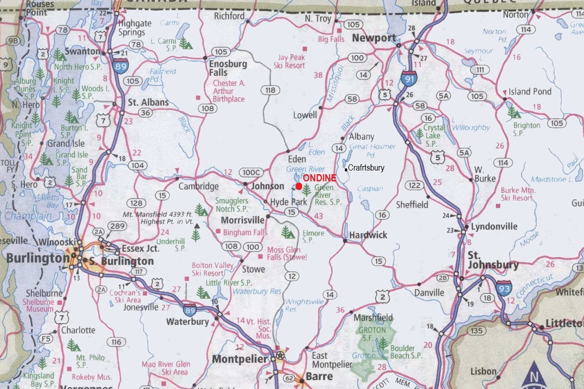 Though secluded within the park, the Ondine is an 8 minute drive to Morrisville, with 2 supermarkets, 3 drug stores and 3 hardware stores, The Town of Stowe, known as the Aspen of the East, is another 15 minutes more, with its world class restaurants and shops. Stowe’s Mount Mansfield is part of the 13 mountain, Epic Pass, Vail family. Jay Peak and Smugglers Notch ski resorts are also a short drive away. The Craftsbury Outdoor Center, 15 minutes to the north, offers rowing, running, biking and skiing programs throughout the year.